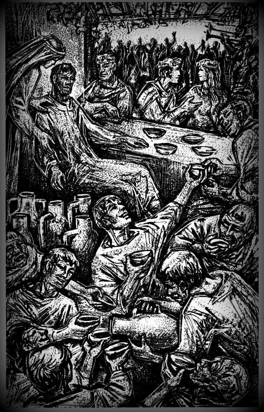 Dessen Tod ihn berührt. Er begleitet den sterbenden Ermordeten, nimmt ihn in seinen Schoß, erleichtert dem alten Mitbruder sein Sterben. Er ist offen und als er den abgemagerten Mann findet tur er genau das: Was ihr dem Geringsten meiner Brüder getan habt, dass habt ihr mir getan. Deshalb Marcelliono Pan e Vino. Der uns Brot und Wein des ewigen Lebens versprochen und gegeben hat überträgt dieses auf jeden von uns.